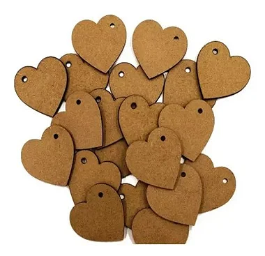 Aplique Coração c/ Furo Mdf Crú/ Branco Recorte Laser