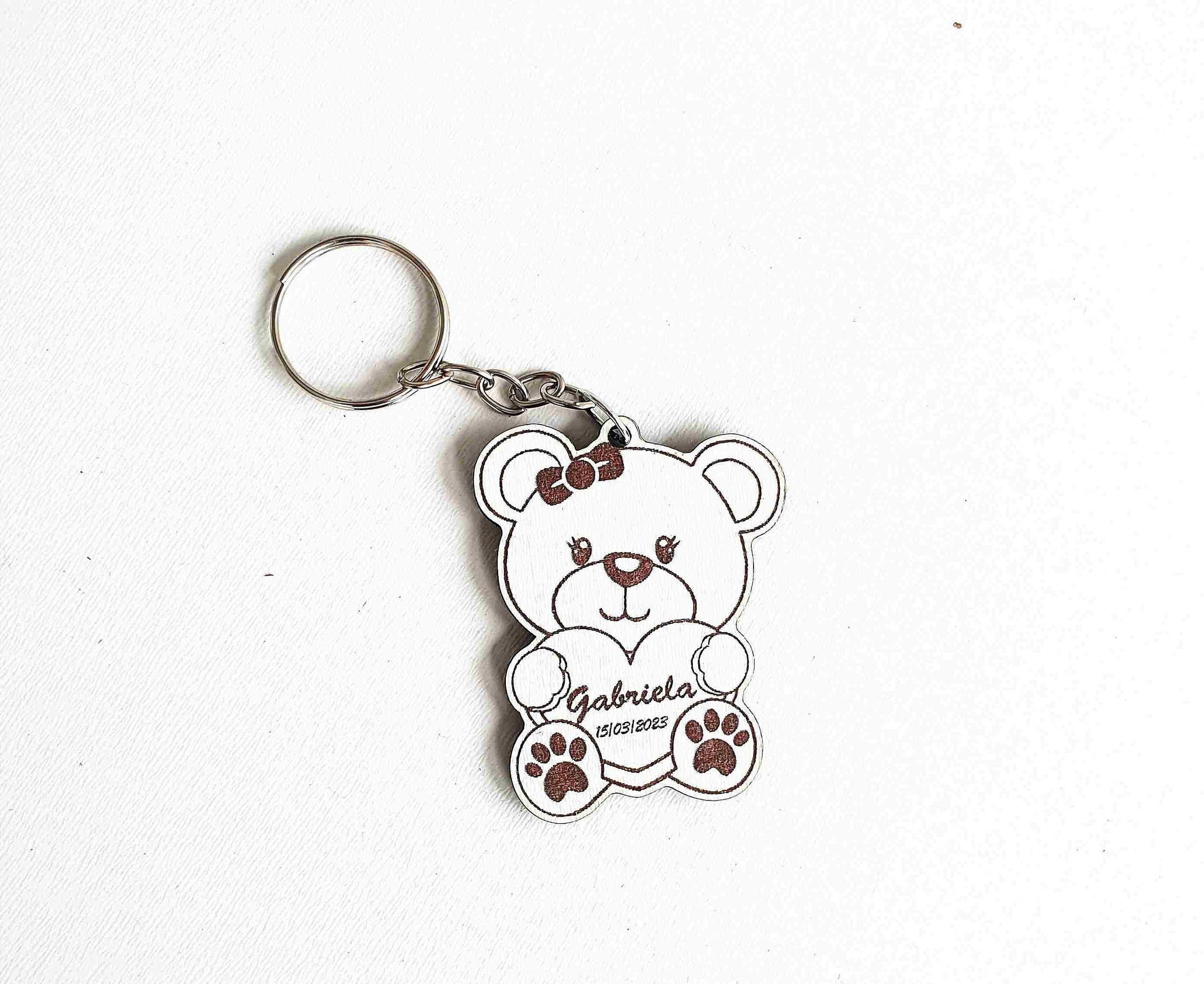 Kit 50 Chaveiros Chá de Bebê Ursinha Charmosa Lembrança Mdf Branco
